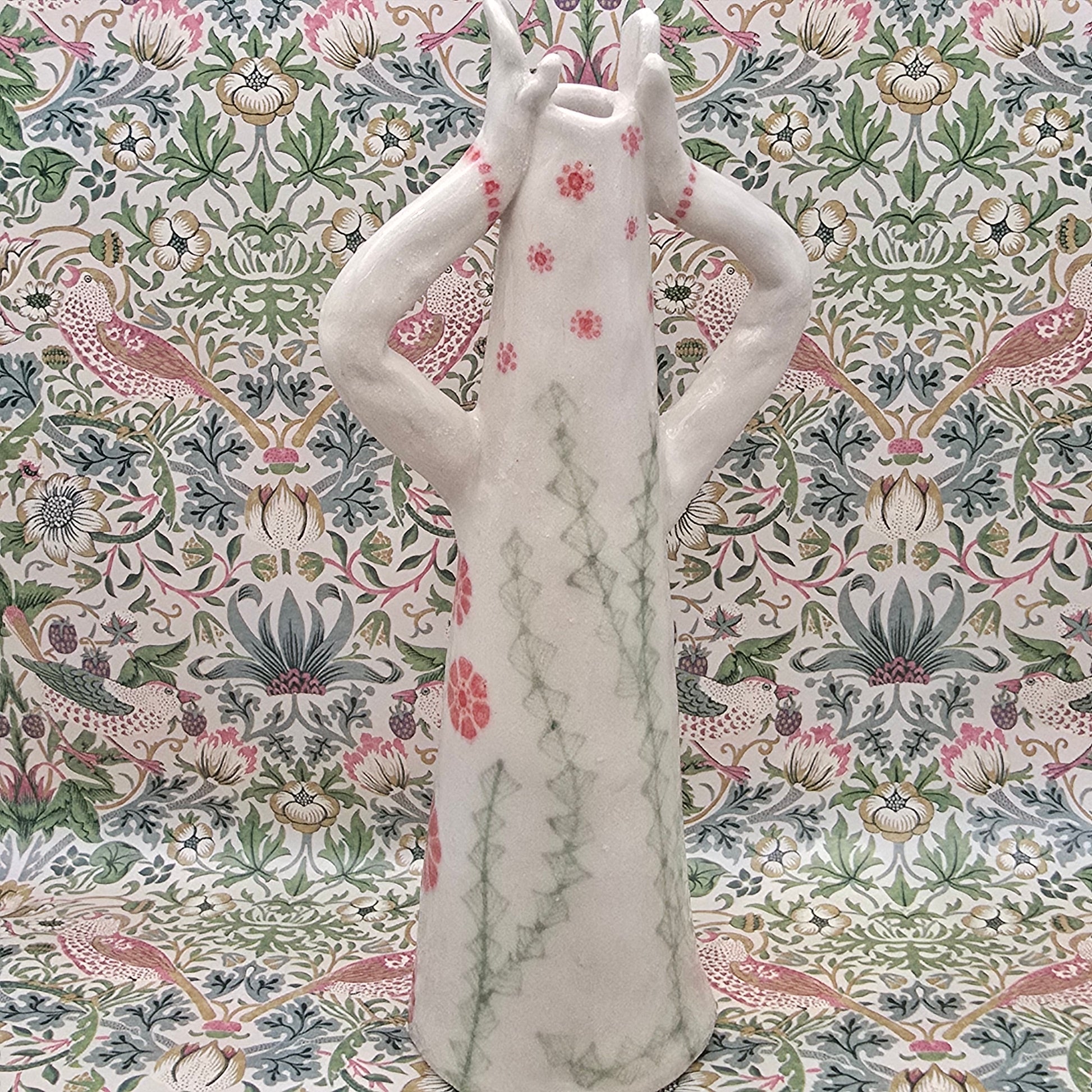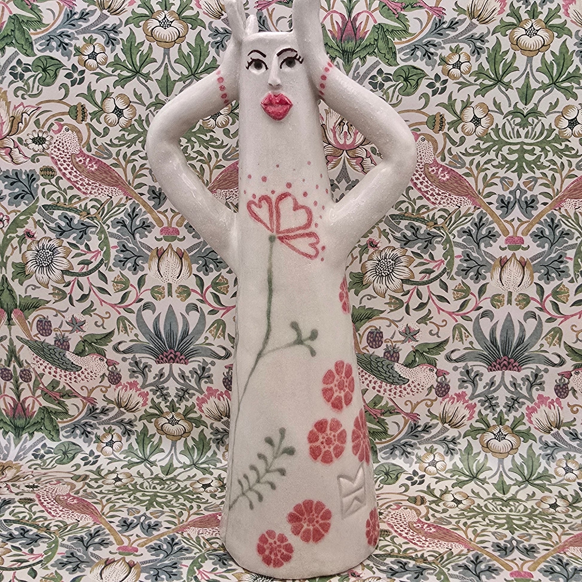 This lovely lady is hand-painted and fully glaced, high-quality stoneware. She holds liquid and can be used as a flower vase, a candle holder, a diffuser or as a decoration in her own right