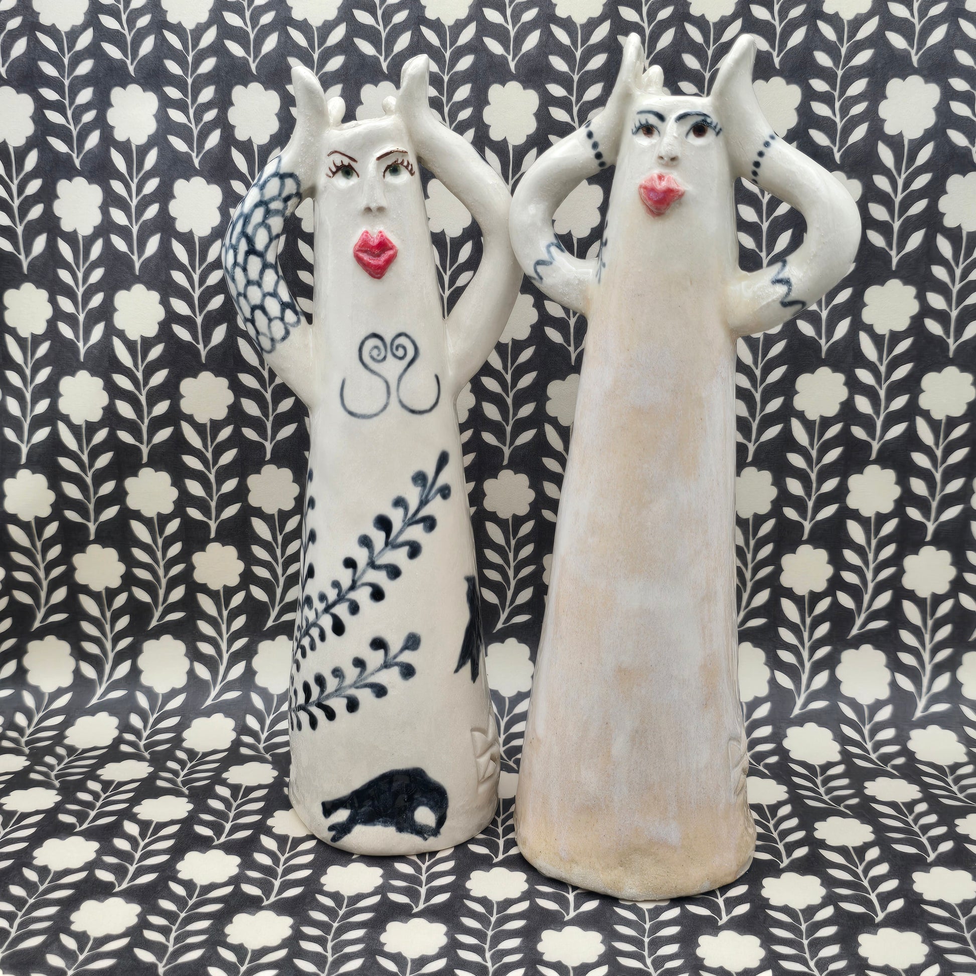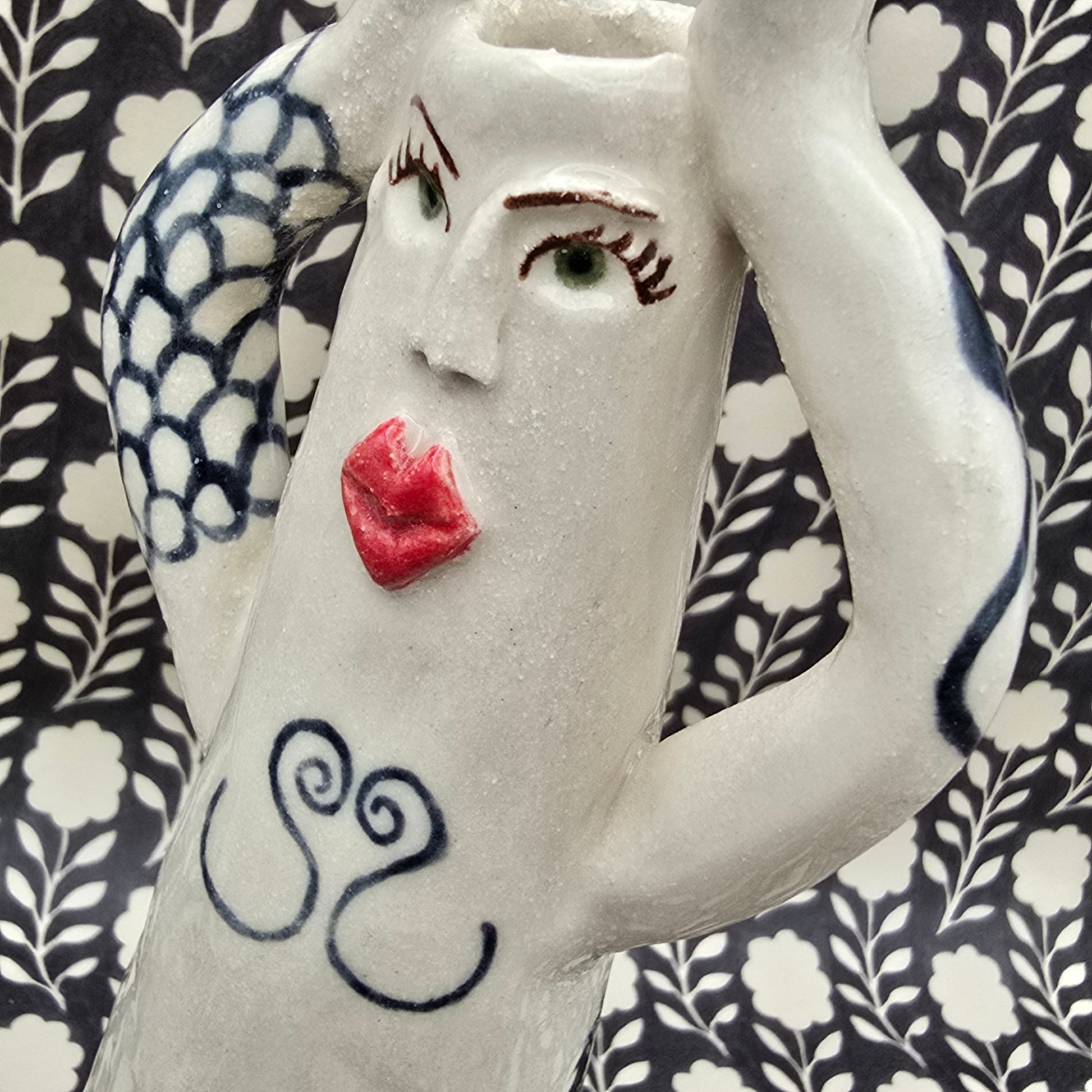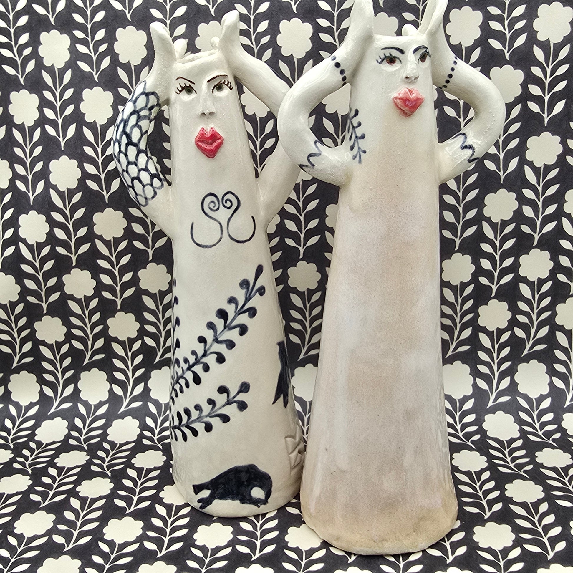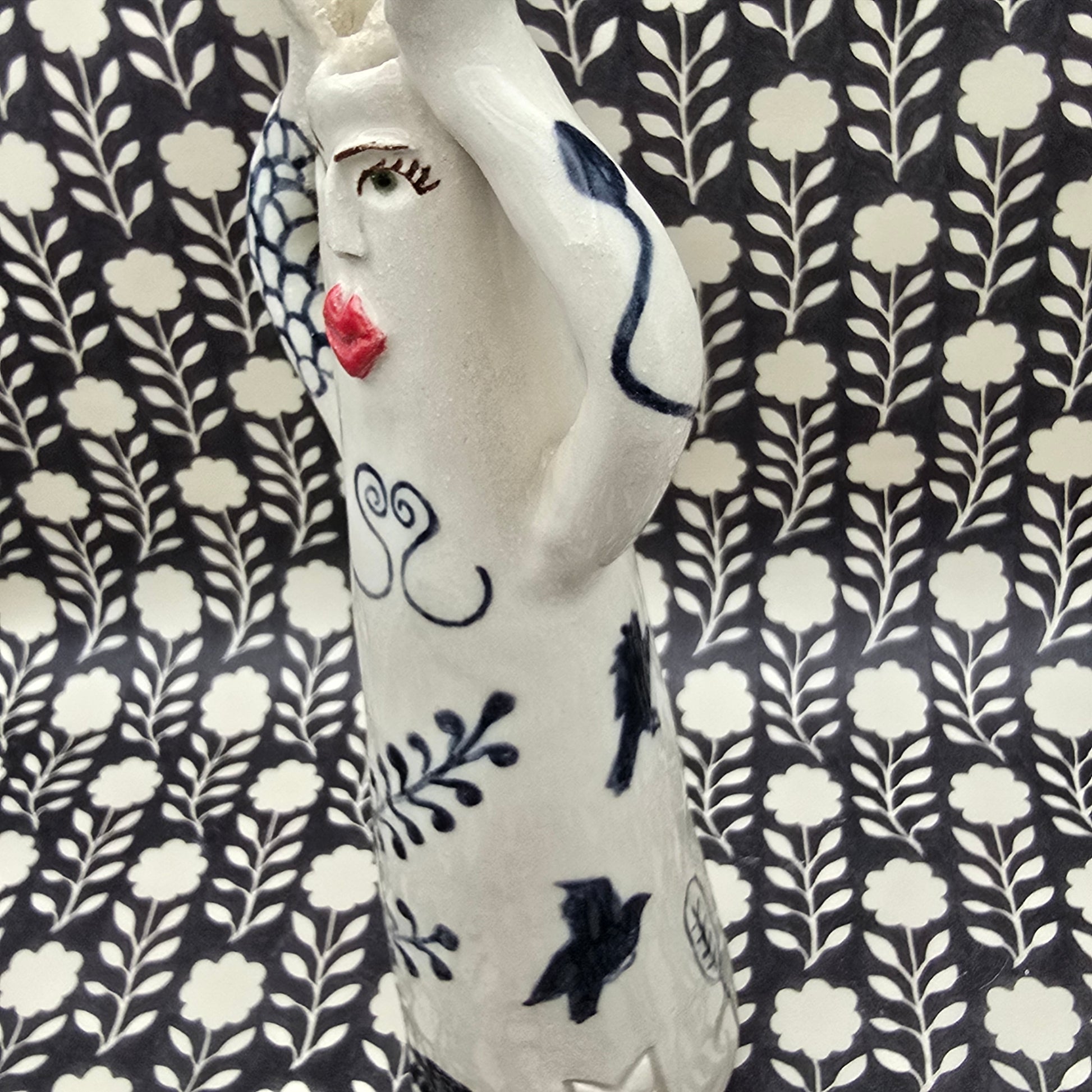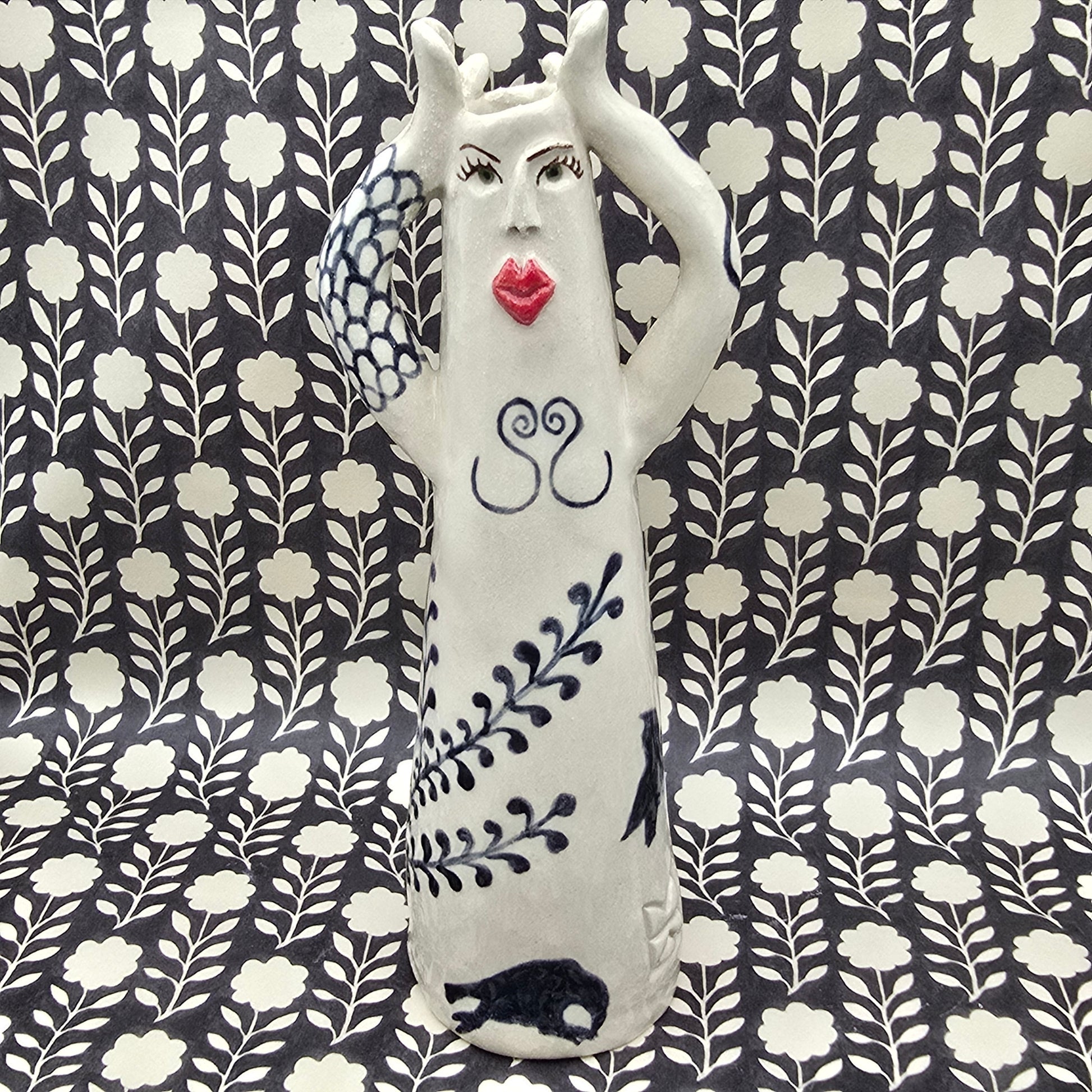 This lovely lady is hand-painted and fully glaced, high-quality stoneware. She holds liquid and can be used as a flower vase, a candle holder, a diffuser or as a decoration in her own right