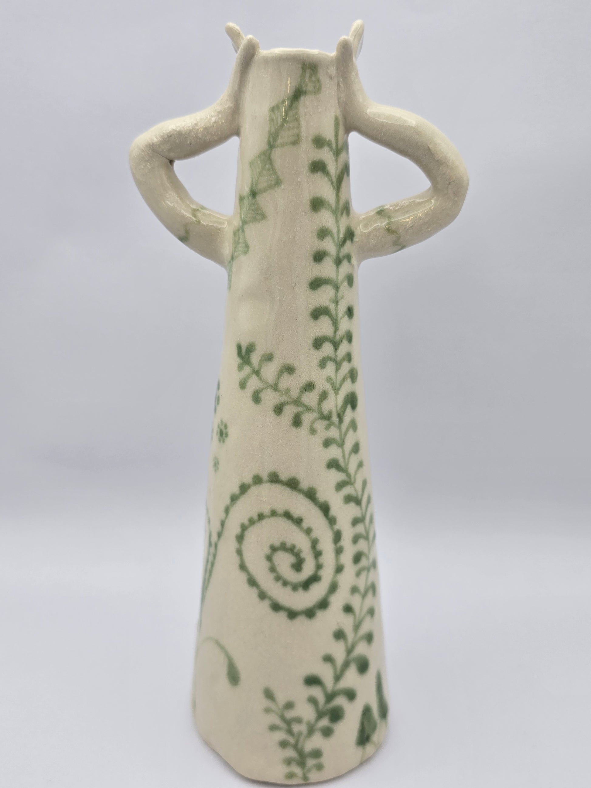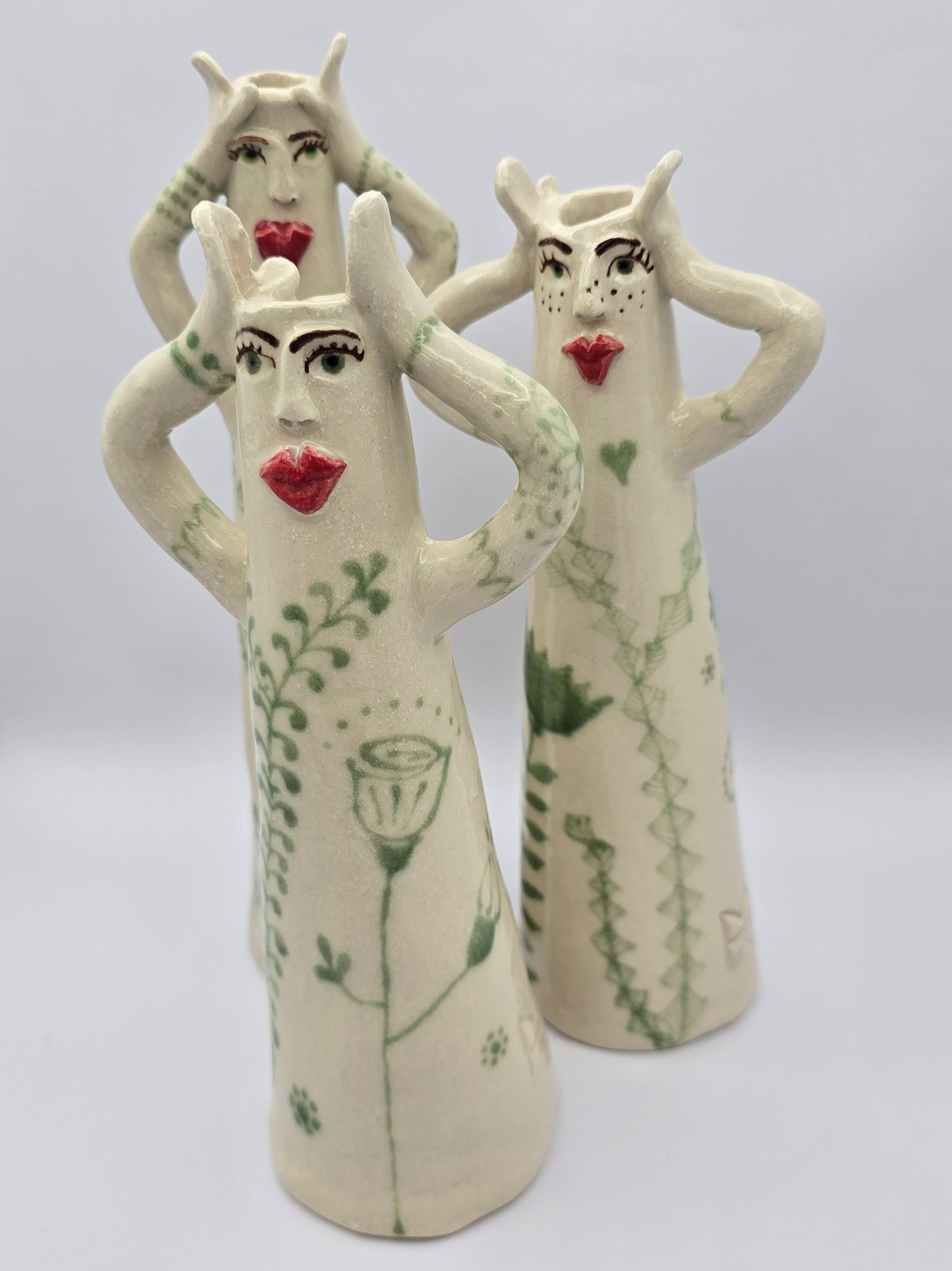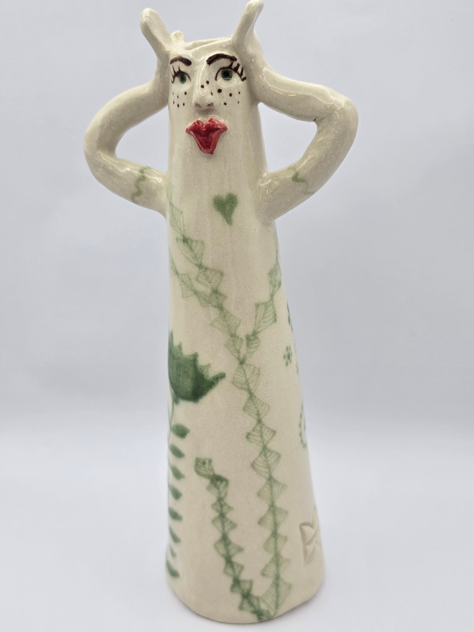 This lovely lady is hand-painted and fully glaced, high-quality stoneware. She holds liquid and can be used as a flower vase, a candle holder, a diffuser or as a decoration in her own right