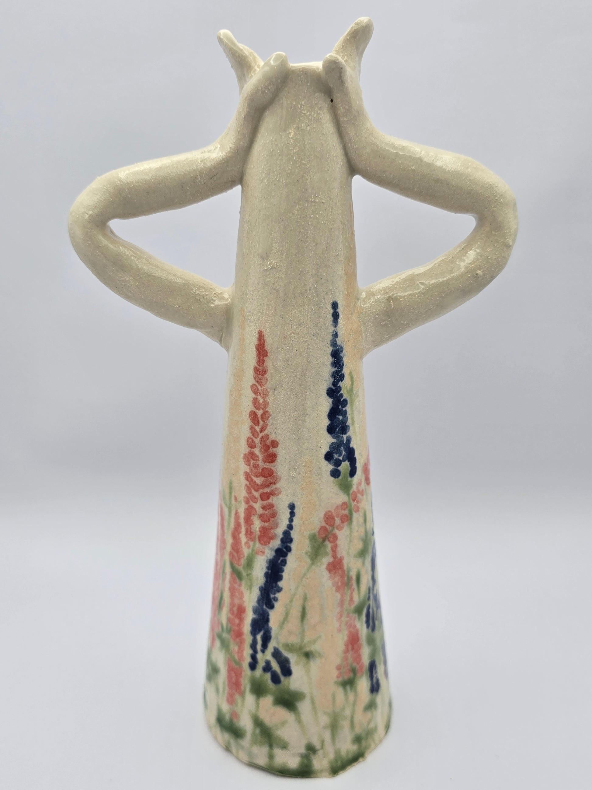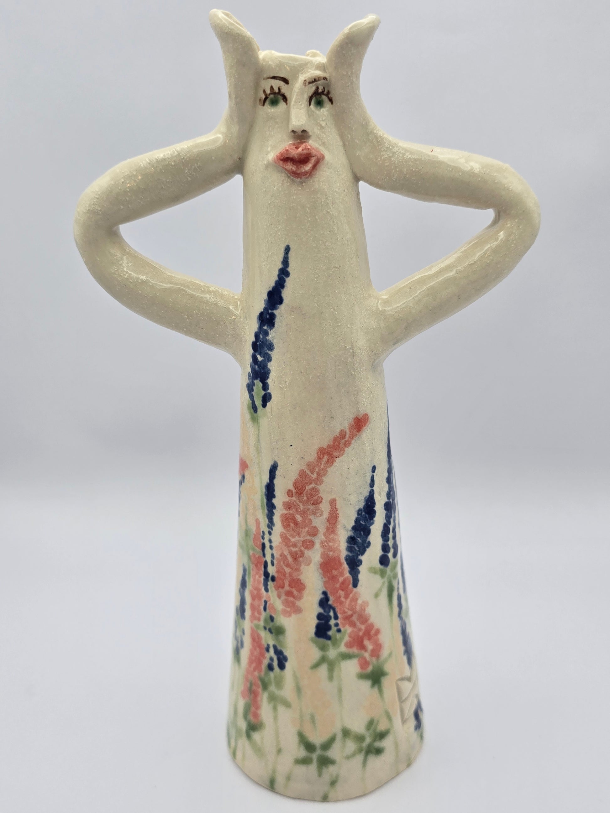 This lovely lady is hand-painted and fully glaced, high-quality stoneware. She holds liquid and can be used as a flower vase, a candle holder, a diffuser or as a decoration in her own right